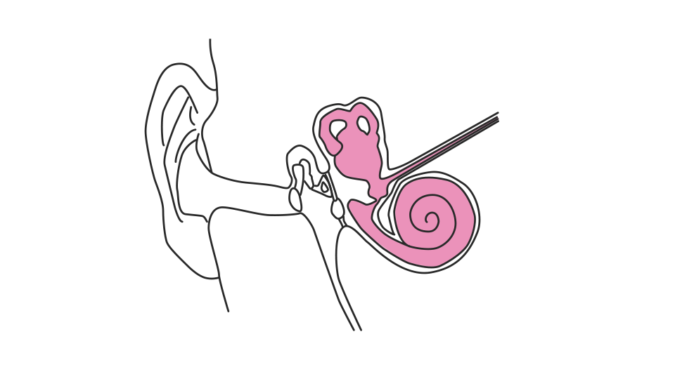 Дрожание (колебание воздуха) передаётся барабанной перепонке, затем через слуховые косточки — жидкости, которая раздражает расположенные в улитке рецепторы, формирующие нервные импульсы.