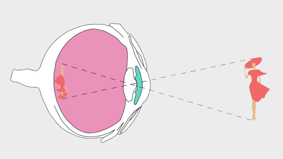 Свет входит в глаз через роговицу, проходит сквозь хрусталики и, пройдя всю толщу сетчатки, попадает на отростки светочувствительных клеток — палочек и колбочек. В них протекают фотохимические процессы, обеспечивающие цветовое зрение.